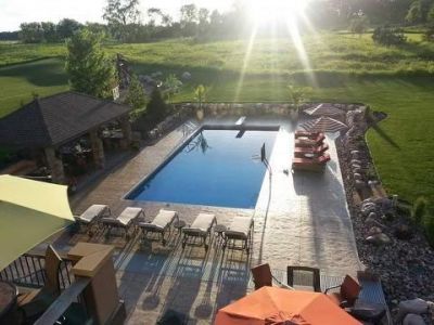 Welcome to 225 Calamus Circle, located in the beautiful Wild Meadows North neighborhood. This exceptional residence spans an impressive 7,870 square feet and offers 5 bedrooms, 6 bathrooms, and a heated/insulated 4-car garage. Step inside to find beautiful stonework, intricate ceiling details, and plenty of gathering spaces throughout. The gourmet kitchen is a chef's dream, complete with stainless steel appliances, an expansive center island, and plenty of storage space. Just off the kitchen, the great room, hearth room, and dinette all offer ample space to entertain or cozy up by the gas fireplaces. The formal dining room, just off the kitchen, provides the perfect setting for memorable dinner parties or intimate family meals. The upper level features four bedrooms, a generous bonus room, and a versatile loft ideal for a home office. The luxurious primary suite is a true retreat, offering a wet bar, private sitting area, and access to its own balcony. The spa-like ensuite bathroom includes dual sinks with separate vanities, a soaking jacuzzi tub, and an expansive walk-in closet with a center island for added storage. Enjoy your morning coffee on the private balcony or unwind while overlooking the beautifully designed backyard. Designed with entertaining in mind, the lower level offers a media room, wet bar, exercise room or office, and a game room with space for a pool table. An incredible indoor sport court completes this level. Step outside to enjoy the heated in-ground pool and relax in the hot tub.