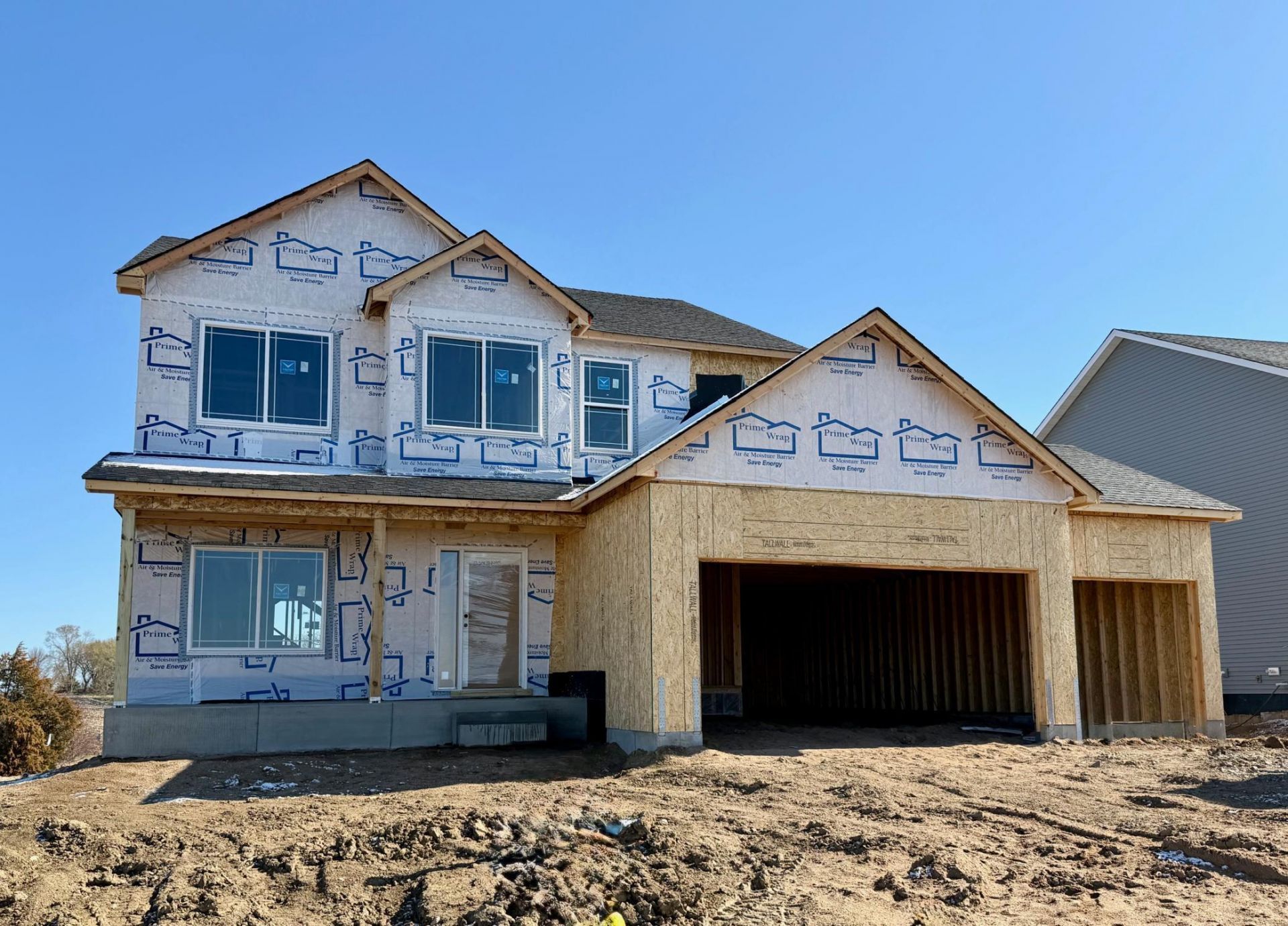 New Construction offering an estimated July Move-in. Highlights include a Spacious 4 BAY GARAGE (1,010 sq. ft.) located on a Walkout Homesite! Two Story modern styled home with a thoughtfully crafted open-concept design. Main floor boasts 9' Ceilings, Great Room with Fireplace, Flex Room, Decorative Stair Rails, Expansive Kitchen with Center Island & Walk-in Pantry, Mudroom, & Half Bath. Upper floor features 4 Bedrooms plus a Versatile Loft, Laundry Room, & 2 Bathrooms. Primary Suite offers Two Walk-In Closets & a Private Deluxe Bath including a Double Sink Vanity, Soaking Tub, Separate Shower with Tile Wall Surround, and Linen Closet. Unfinished Walkout Lower Level is ready for future finish including future family room, 5th bedroom, & 4th bathroom. No changes can be made to plan or finishes. Rendering and some photos may not depict actual plan, materials, & finishes may vary. All measurements are approximate.